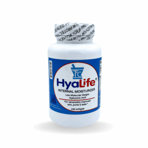 Hyalife® is a skincare nutraceutical that moisturizes from the inside out, helping your skin stay hydrated. It contains a clinically proven, low molecular weight hyaluronic acid gel complex, which acts as a sponge to hold onto water within the cells of the skin, connective tissue, and cartilage.